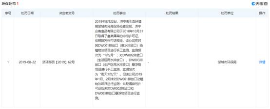 此外,参股公司成武呱呱鸭食品有限公司,分别在2016年6月、2017年12月、2018年5月,被成武县环保局连续3次处罚。