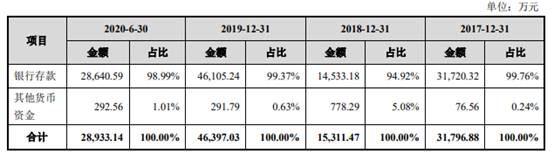 公司货币资金主要为银行存款。2017年至2020年上半年各期末,益客食品的银行存款为31,720.32万元、14,533.18万元、46,105.24万元和28,640.59万元。