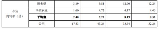 2017年至2020年上半年,益客食品的存货周转率分别为32.26、33.94、43.24和17.43,同行业可比公司的存货周转率均值分别为8.32、8.19、7.27和2.40。