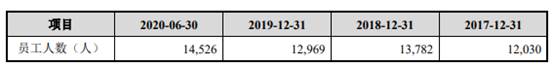 截至2020年6月末,公司劳务外包人员数量达5219人,占当期员工总数的35.93%。