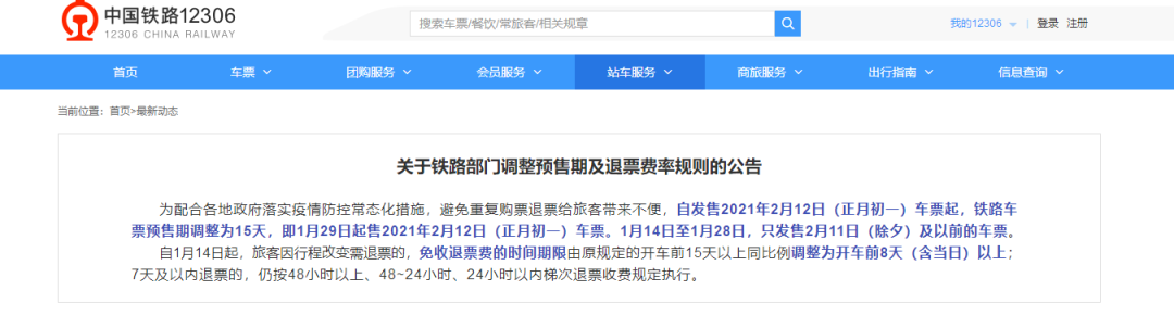 铁路部门:调整火车票免费退票期限